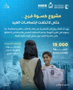 ائتلاف الخير للإغاثة الإنسانية “كسوة فرح” لعيد أكثر بهجة وطمأنينة ل 19,000 أسرة اقرأ المزيد