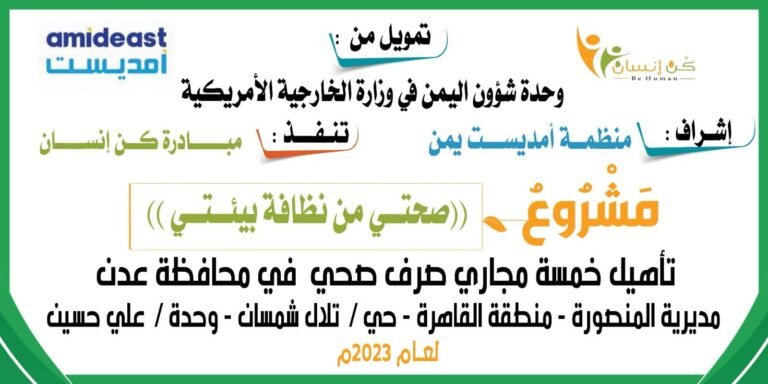 تنفذ مبادرة كن انسان مشروع صحتي من نظافة بيئتي عبارة عن تأهيل خمسة مجاري صرف صحي في العاصمة عدن مديرية المنصورة منطقة القاهرة حي تلال
