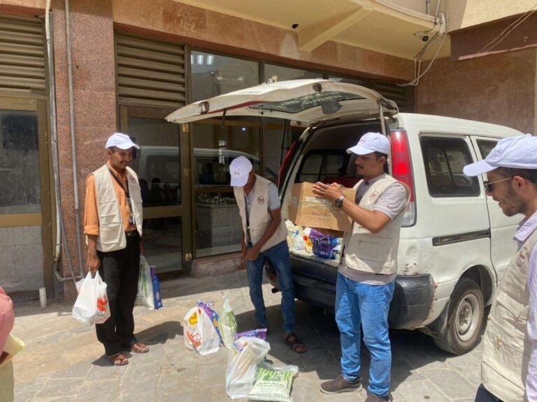 فريق تراحم التطوعي الكويتي يدشن توزيع مواد غذائية لـ250 أسرة نازحة في المخا