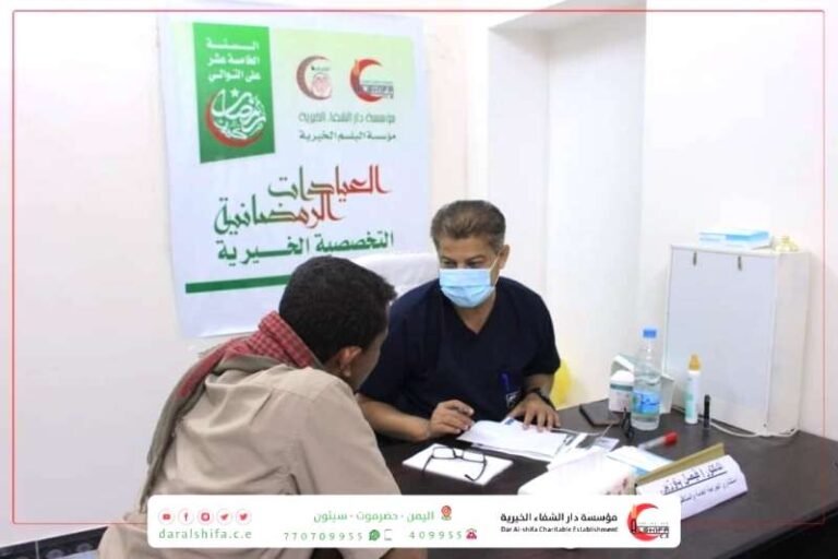 أقامت مؤسسة دار الشفاء الخيرية بالشراكة مع مؤسسة البلسم الخيرية خلال شهر رمضان المبارك المنصرم 1444هـ ، بمركز البلسم الصحي بسيئون (العيادات الرمضانية التخصصية الخيرية)،