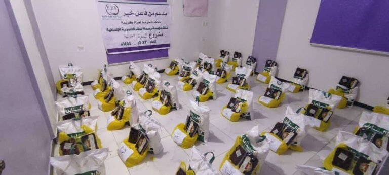 مؤسسة “بصمة صفاء ” التنموية الإنسانية توزع ( 100 ) سلة غذائية للأسر الفقيرة بعدن