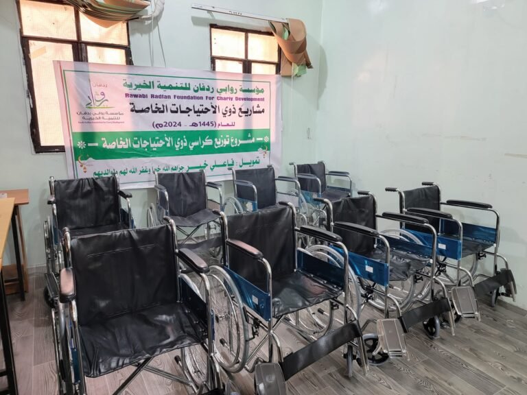 مؤسسة روابي ردفان للتنمية الخيرية تنفذ مشروع توزيع الكراسي المتحركة بدعم من فاعل الخير مايو 11, 2024 لا توجد تعليقات