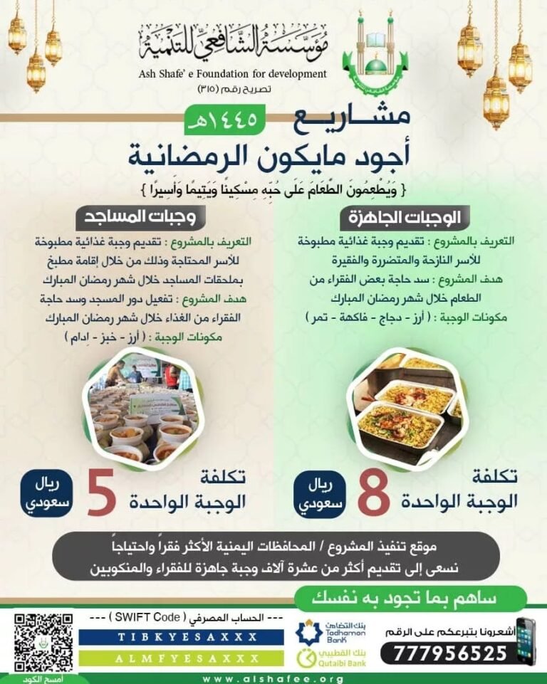 بتمويل من جمعية العون المباشر وتنفيذ ائتلاف الخير.. تدشين مشروع إفطار صائم (توزيع سلال غذائية) في محافظة حضرموت مارس 23, 2024 لا توجد تعليقات