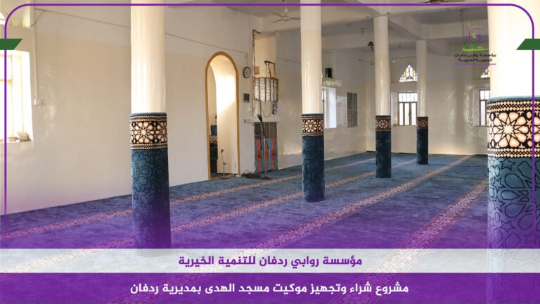 مؤسسة روابي ردفان للتنمية الخيرية تنفذ مشروع صيانة وفرش مسجد الهدى وفرش مسجد الغرناطة بالسعدية بمديرية ردفان مارس 20, 2024 لا توجد تعليقات