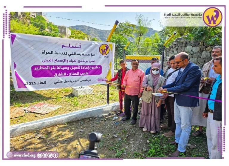 مؤسسة رسالتي لتنمية المرأة تفتتح مشروع إعادة تأهيل وصيانة بئر “المحارير” بمديرية جبل حبشي – تعز أغسطس 31, 2025 لا توجد تعليقات