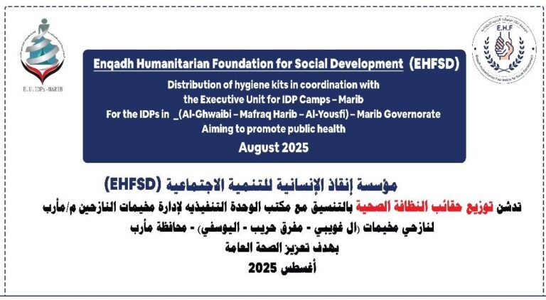 مؤسسة إنقاذ الإنسانية تنفذ توزيع حقائب النظافة الصحية للنازحين بمحافظة مأرب سبتمبر 13, 2025 لا توجد تعليقات