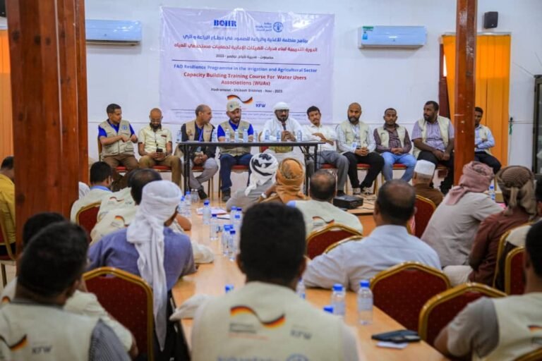 في مدينة شبام – حضرموت نظم ائتلاف الخير للإغاثة الإنسانية الدورة التدريبية لبناء قدرات الهيئات الإدارية لجمعيات مستخدمي المياه، ضمن برنامج منظمة الأغذية والزراعة للصمود