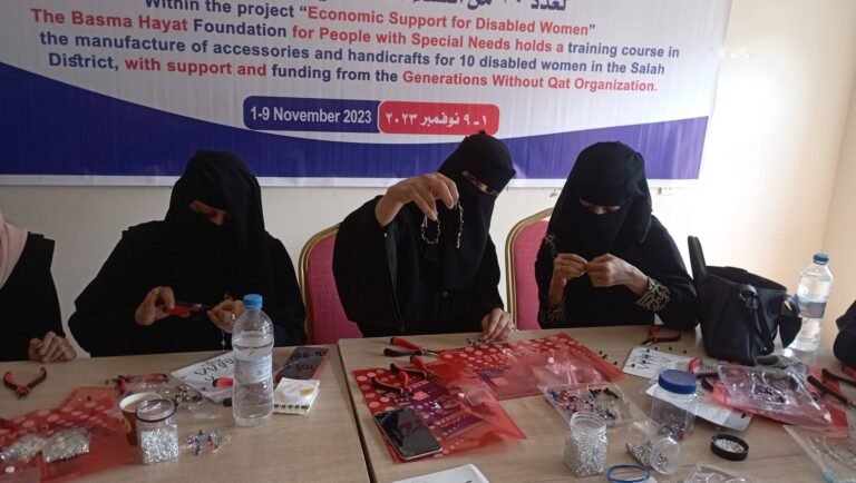 اجيال بلا قات وضمن مشروع “الدعم الاقتصادي لنساء ذوات الاعاقة في مديرية صالة ” دشنت مؤسسة بسمة حياة لذوي الاحتياجات الخاصة الدورة التدريبية في الاكسسوارات والحرف اليدوية