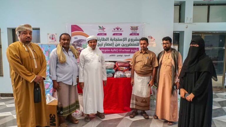 دشنت مؤسسة فينا خير للتنمية والأعمال والإنسانية بمحافظة المهرة مشروع الاستجابة الطارئة للأسر المتضررة من اعصار تيج وذلك برعاية محافظ محافظة المهرة واشراف مكتب الشؤون