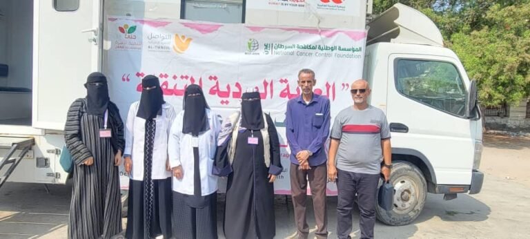 بدعم المؤسسة الوطنية لمكافحة السرطان ومؤسسة تواصل للتنمية الإنسانية ومؤسسة جنى لتنمية الأسرة دشنت العيادة المتنقلة للكشف المبكر عن السرطان