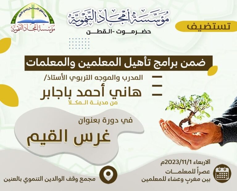 مؤسسة أمجاد التنموية بالقطن تعلن عن دورة بعنوان “غرس القيم”
