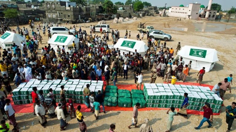 توزيع مساعدات إيوائية وغذائية طارئة مقدمة من مركز الملك سلمان للإغاثة والأعمال الإنسانية للأسر المتضررة من إعصار تيج في مديرية الريدة وقصيعر