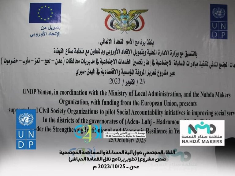 عقد لقاء يناقش مشروع “تطوير برنامج نقل القمامة المباشرة” تنفذه مؤسسة اكون للحقوق والحريات وبرنامج الامم المتحدة الإنمائي بالتنسيق مع وزارة الإدارة المحلية وبتمويل الاتحاد