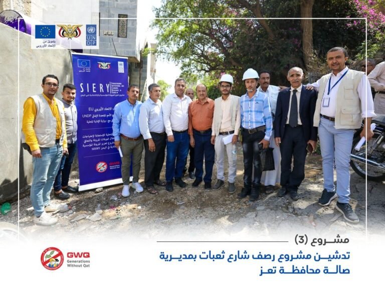 أجيال بلا قات وبتمويل من الاتحاد الأوروبي…تدشين مشروع رصف شارع ثعبات في مديرية صالة بتعز