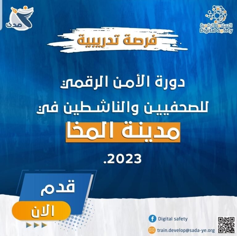 المنظمة الوطنية للإعلاميين اليمنيين صدى: فرصة تدريبية في الأمن الرقمي للصحفيين والمدافعين عن حقوق الإنسان في مدينة المخا