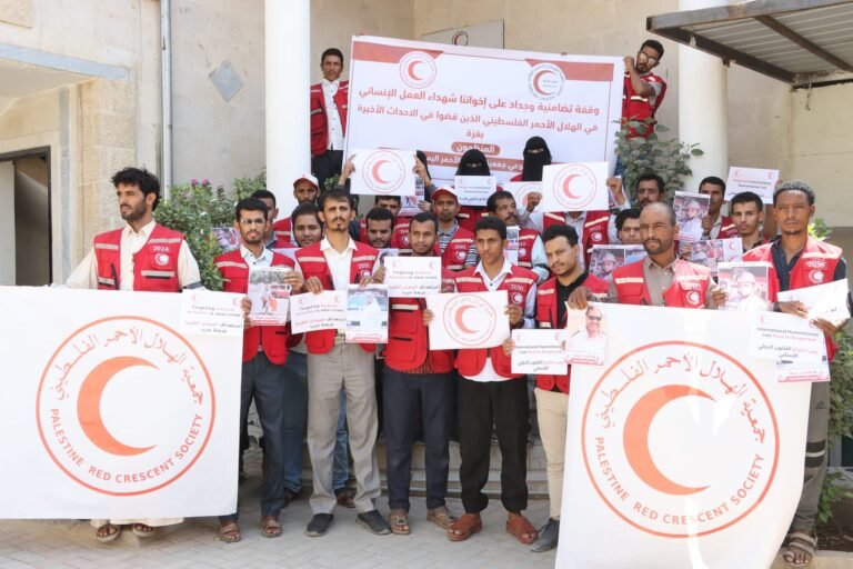 جمعية الهلال الأحمر اليمني فرع مأرب تضامناً وحِداداً على إخواننا شهداء العمل الإنساني بغزة