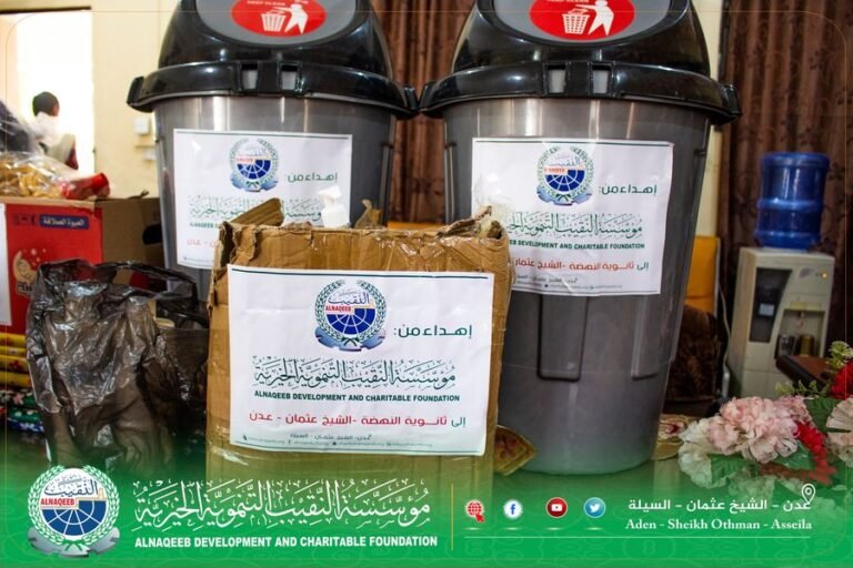 رفدت مؤسسة النقيب التنموية الخيرية ثانوية النهضة للبنين بمديرية الشيخ عثمان – محافظة عدن بمواد نظافة. يأتي هذا الدعم ضمن برامج ومشاريع مؤسسة النقيب التنموية