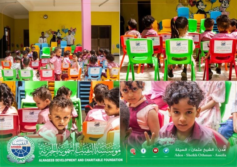 مؤسسة النقيب التنموية الخيرية ترفد روضة الفيحاء محافظة عدن – مديرية الشيخ عثمان – حي السيلة بعدد من الكراسي
