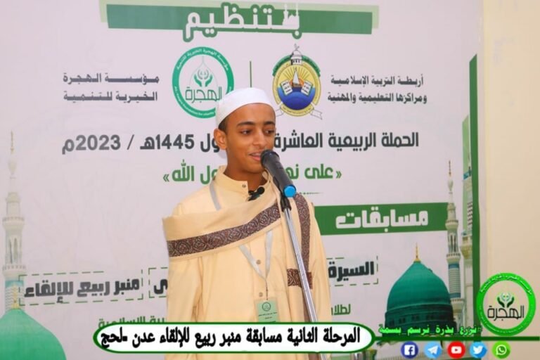 مؤسسة الهجرة تنظم مسابقة “فنّ الإلقاء” المسماة بـ “منبر ربيع” لطلاب المساجد بمحافظة عدن