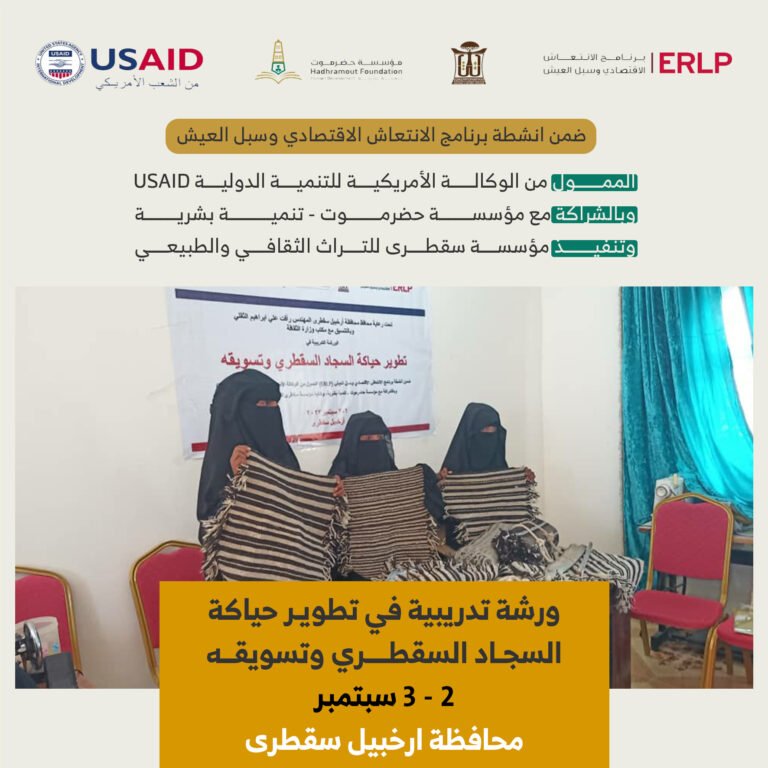 مؤسسة حضرموت: عقد ورشة تدريبية في تطوير حياكة السجاد السقطري وتسويقه بمحافظة أرخبيل سقطرى