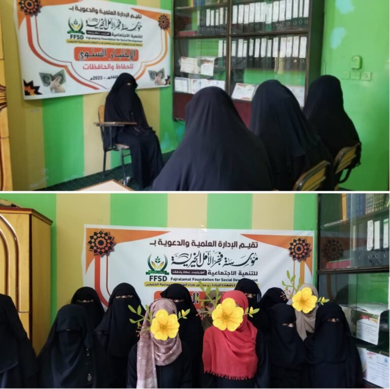 أقامت الإدارة العلمية والدعوية بمؤسسة فجر الأمل الخيرية للتنمية الإجتماعية يوم السبت 9/ 9/ 2023م مجلس ختم لثلاثة عشر حافظة لكتاب الله تعالى من الحلقات