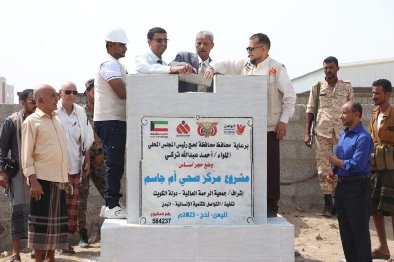 بتمويل كويتي.. التواصل للتنمية الإنسانية تضع حجر اساس بناء وتجهيز مركز صحي في محافظة لحج