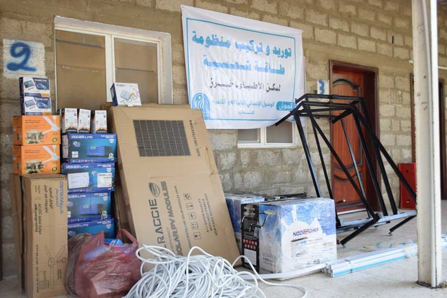 قامت الوصول الإنساني في محافظة عدن بتركيب منظومة طاقة شمسية متكاملة، مكونة من خمسة ألواح وخمس بطاريات مع كافة مستلزماتها، لسكن الأطباء في مخيم خرز للاجئين الصومال في محافظة لحج، بهدف استدامة الطاقة وتأمينها للأطباء المقيمين في السكن، في ظل الانقطاع المتكرر للتيار الكهربائي.