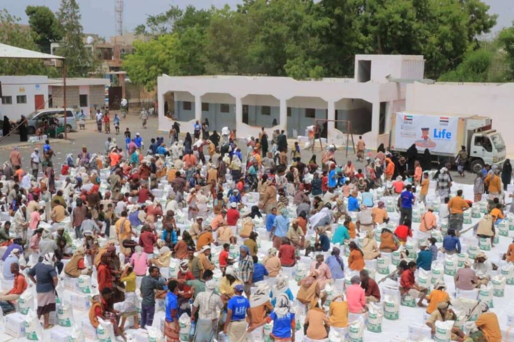 ضمن مشروع آل مكتوم الخيري .. منظمة ” لايف ” للإغاثة والتنمية الأمريكية توزع (500) سلة غذائية بأبين