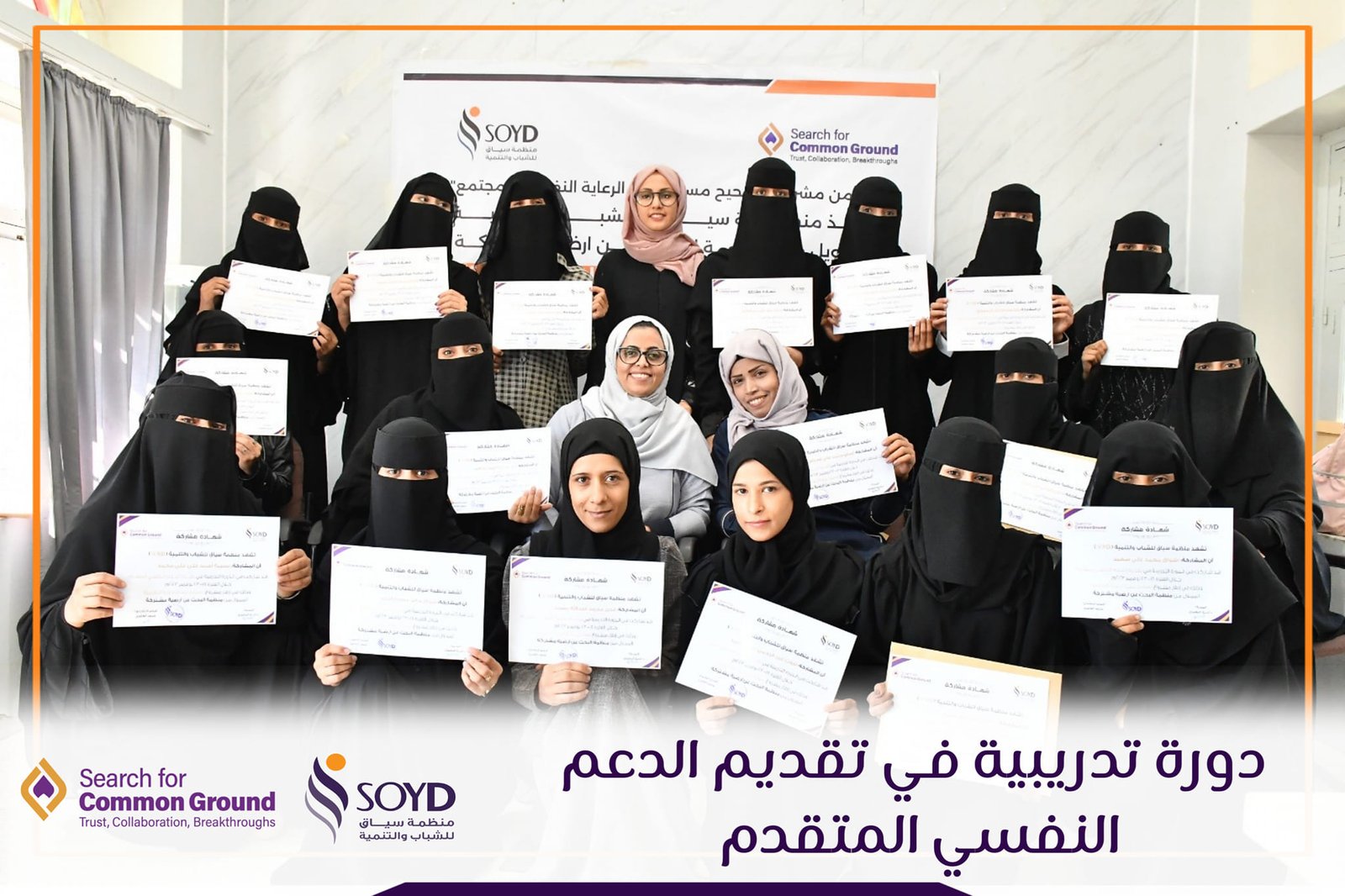 منظمة سياق للشباب والتنمية تختتم دورة تدريبية في “تقديم الدعم النفسي المتقدم” لعدد 20 شابة من خريجات قسم علم النفس والذي استمر 6 ايام (18 نوفمبر – 23 نوفمبر ) اكتسبن خلالها المشاركات العديد من المهارات والتقنيات المتعلقة في الدعم النفسي.