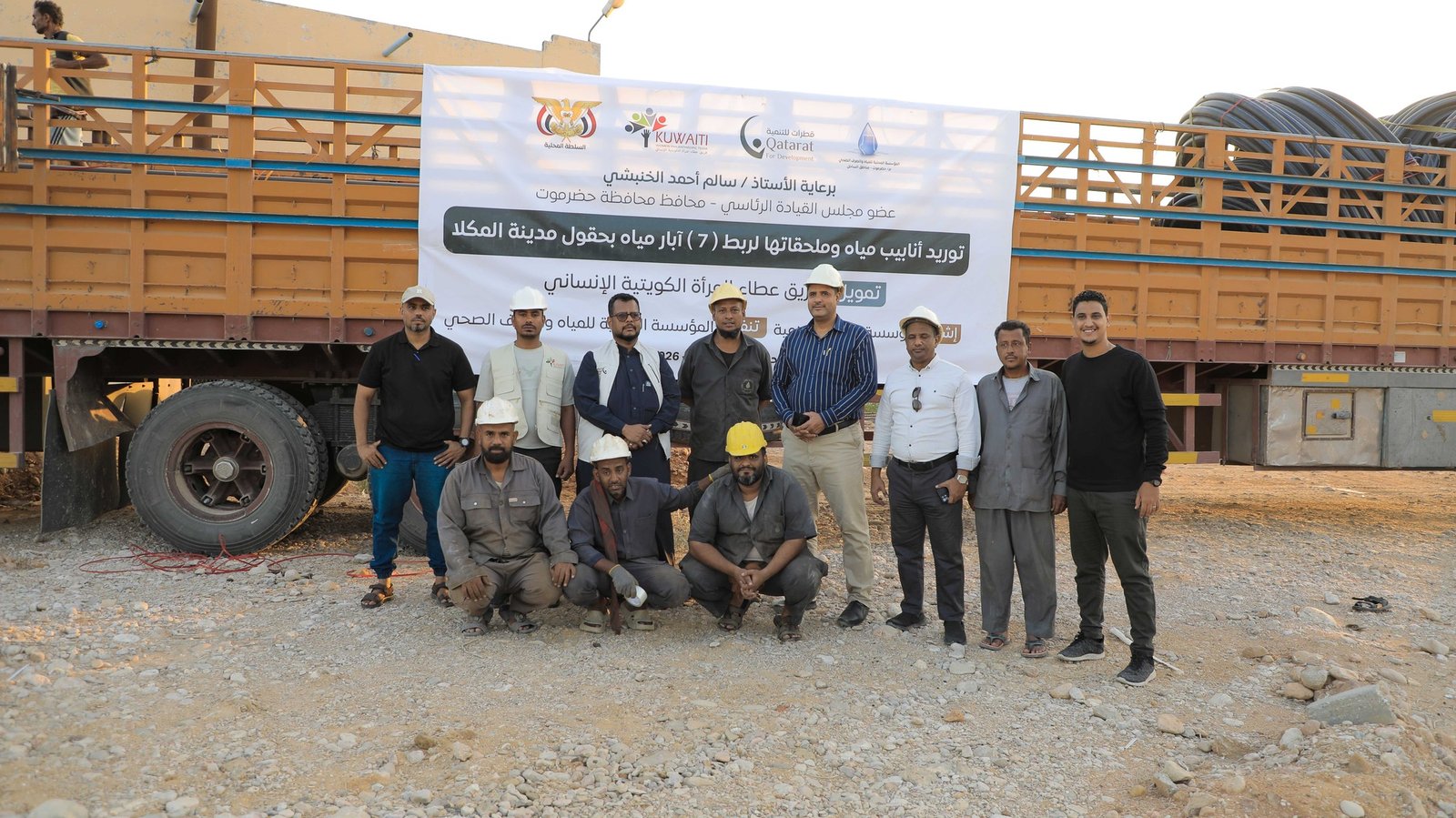 بتمويل من فريق عطاء المرأة الكويتية الإنساني دشّنت مؤسسة قطرات للتنمية مشروع توريد أنابيب وملحقاتها لسبعة آبار في مدينة المكلا، ، بإشراف مؤسسة قطرات للتنمية وتنفيذ المؤسسة المحلية للمياه والصرف الصحي، وذلك بحضور الرئيس التنفيذي للمؤسسة المهندس أصيل عبدالله جوبان ومدير مكتب المؤسسة المحلية للمياه والصرف الصحي المهندس زاهر باخوار، في خطوة نوعية لتعزيز استقرار إمدادات المياه في المدينة.