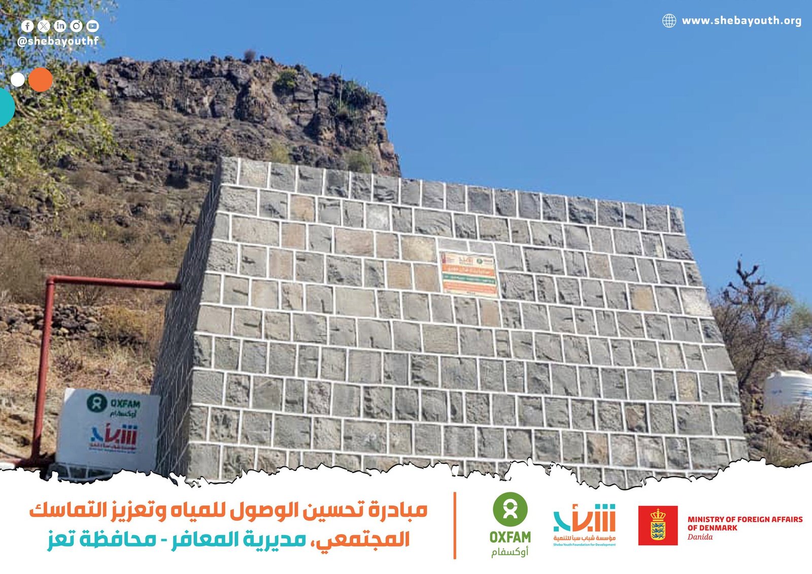 ضمن مشروع «المرأة والسلام» الذي تنفذه مؤسسة شباب سبأ للتنمية بالشراكة مع منظمة أوكسفام، وبدعم من وكالة التنمية الدولية الدنماركية (DANIDA)، تم تنفيذ مبادرة (تحسين الوصول إلى المياه وتعزيز التماسك المجتمعي) في قرية الجنح – عزلة الشعوبة – مديرية المعافر – محافظة تعز، من خلال بناء خزان لمعالجة إشكالية الوصول العادل إلى المياه التي كانت سبباً للتوتر بين المجتمعات المحلية لسنوات.
