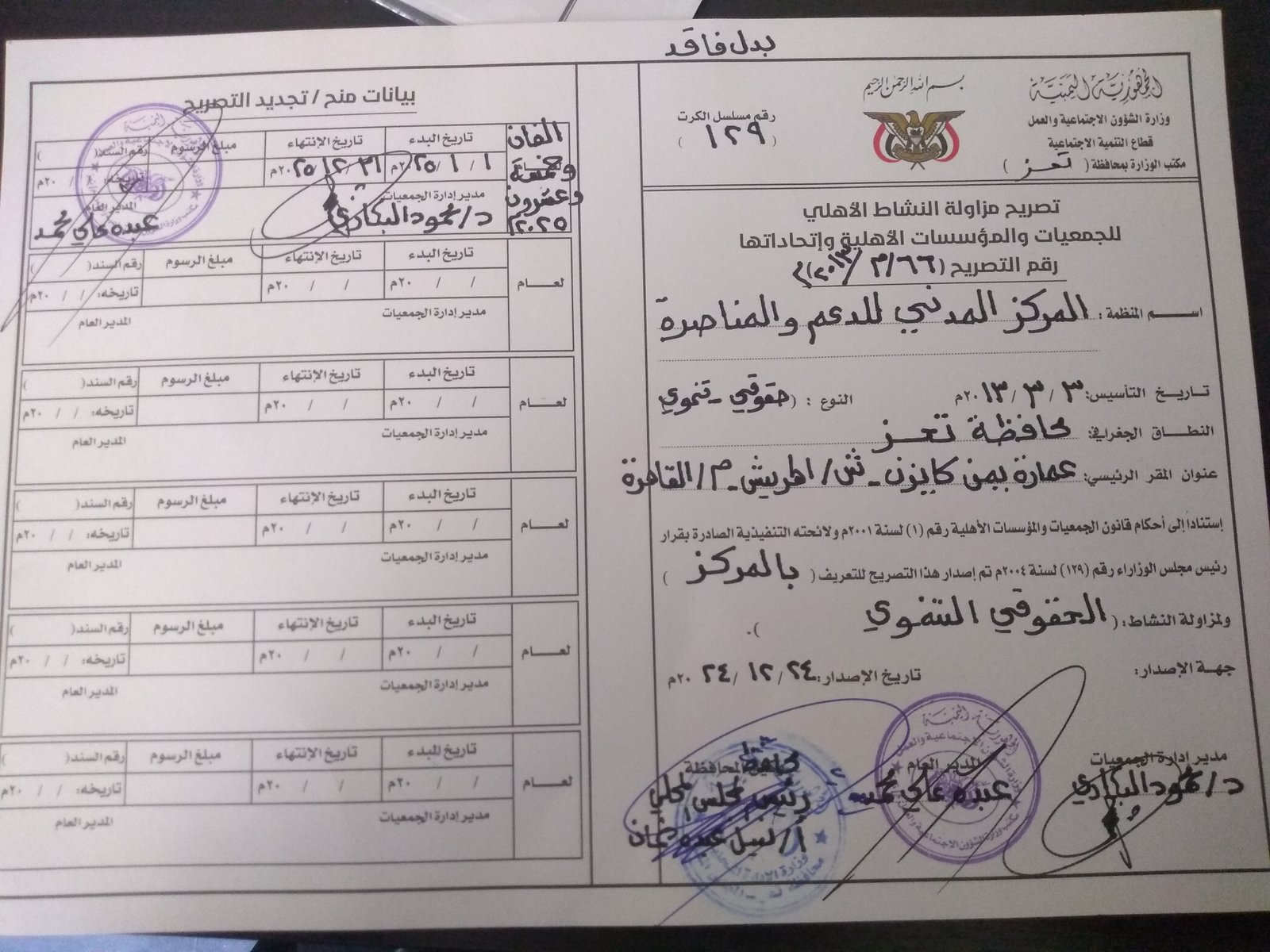 • العمل في كل مديريات محافظة تعز .