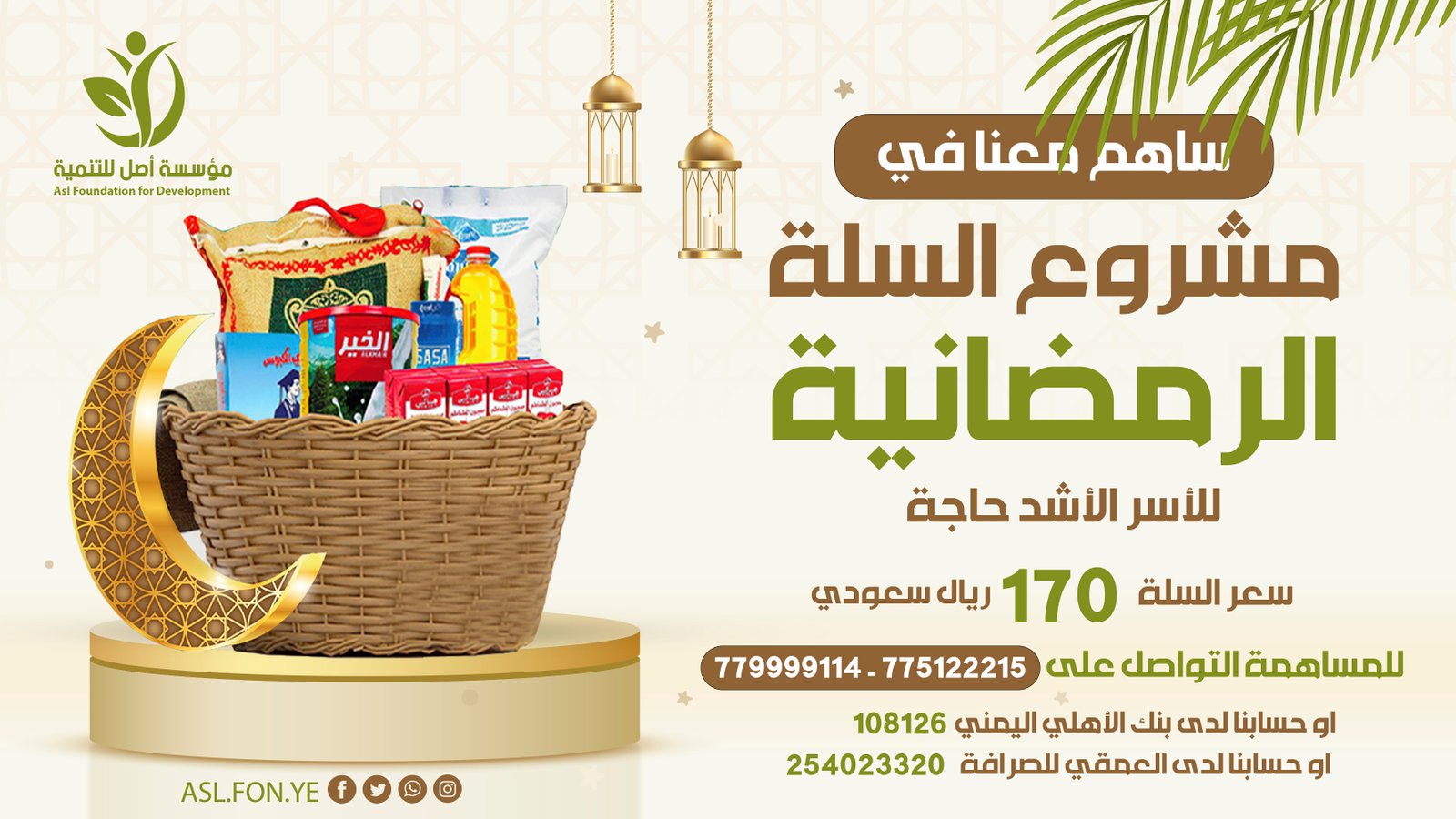 السلة الغذائية وتوزيع التمور وتوزيع المشتقات النفطية للمساجد